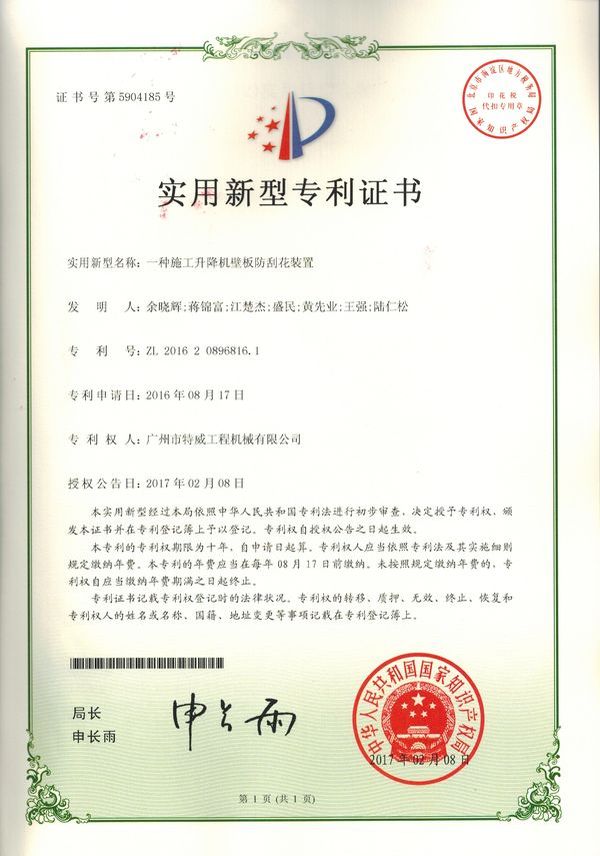 廣州市特威工程機(jī)械有限公司地處廣州市白云區(qū)神山鎮(zhèn),廣清高速神山出口附近,是一家施工升降機(jī)的專業(yè)生產(chǎn)廠家。公司成立于2011年,占地100000多平方米,注冊資金1060萬元,現(xiàn)有員工300余人其中工程技術(shù)人員33人,高級技術(shù)人員52人。